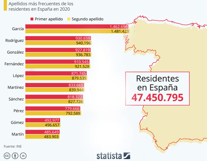 Sociedá García sigue siendo l’apellíu más común n’España by redacción asturnews 27 de xunetu, 2021 written by redacción asturnews 27 de xunetu, 2021 4,3K A pocos va sosprender saber que García, d’orixe patronímicu y unu de los apellíos más antiguos n’España, sigue siendo un añu más el más común nel país, tantu de primeru como de segundu apellíu. Rodríguez ye’l segundu apellíu más espardíe per España. Según datos del Institutu Nacional d’Estadística (INE) de 2020, hai casi 1,5 millones de residentes n’España que se apellidan García de primeru, y otros tantos de segundu. A bastante distancia, Rodríguez ocupa’l segundu llugar ente los apellíos más comunes n’España. Alrodiu de 931.000 persones llévenlu de primer apellíu y 940.000 de segundu. Completando’l podiu ta González, con casi 928.000 de residentes que lu tienen como primer apellíu y abargana de 937.000 como segundu. Fuente: https://es.statista.com 0 FacebookTwitterPinterestEmail Anterior Lisardo Lombardía dexa Bretaña depués del so caberu Festival de Lorient siguiente Lydia Espina toma’l relevu de Carmen Suárez al mandu d’Educación Tamién te podria gustar Asturnews va tornar tres del branu con nuevu... Iniciativa pol Asturianu y Barbón desixen a Adif... Iniciativa reclama un mandatu marcu na RTPA Payares acueye les XLI Xornaes Internacionales d’Estudiu de... L’Atles llingüísticu del Navia-Eo ponse n’accesu llibre Aína entama’l cursu políticu con un actu n’Uviéu La Delegación asturiana en Lorient protagoniza la xornada... La UABRA aporta a la segunda selmana d’actividaes 4200 firmes sofiten la música n’asturianu en XIxón Blanca Fernández foi la pregonera de la XXVII...