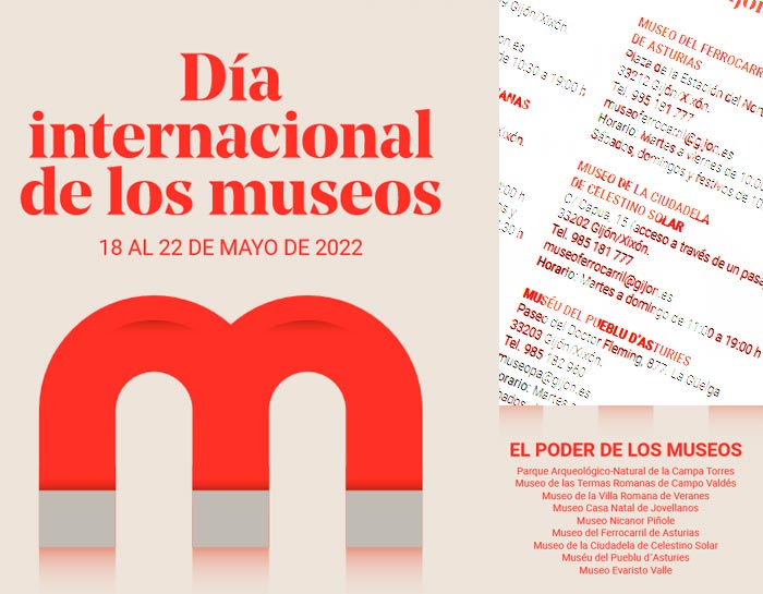 ConceyosEducaciónSociedáTurismu El miércoles celébrase’l Día Internacional de los Museos en Xixón by redacción asturnews 17 de mayu, 2022 Cada 18 de mayu tien llugar el Día Internacional de los Museos, celebración creada pol Conseyu Internacional de Museos (ICOM) pa sensibilizar al públicu sobro’l papel de los museos nel desenvolvimientu de la sociedá. La Rede Municipal de Museos de Xixón xúnese cada añu a esta celebración con un ampliu programa d’actividaes. Siguir lleendo 17 de mayu, 2022 0 FacebookTwitterPinterestEmail