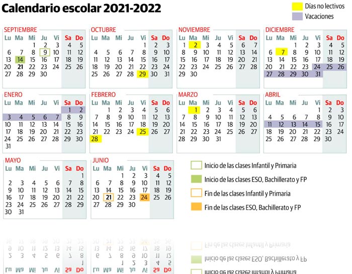 Uncategorized El calendariu escolar inclúi descansos cada seis selmanes by redacción asturnews 30 d'abril, 2021 El calendariu escolar preparáu pola Conseyería d’Educación pal nuevu xursu 2021-2022 va incluyir descansos cada seis selmanes. La Conseyería d’Educación aprobó esta selmana’l calendariu escolar del próximu cursu, que va arrincar el 9 de setiembre pa Infantil y Primaria y el 14 en Secundaria. Siguir lleendo 30 d'abril, 2021 0 FacebookTwitterPinterestEmail