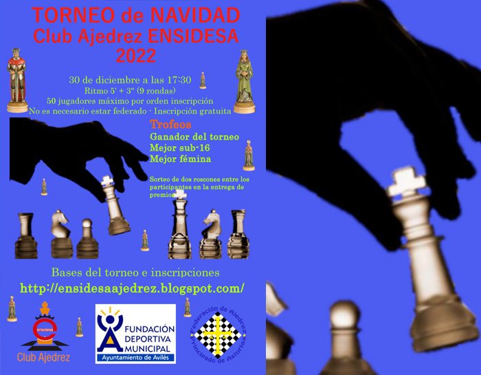 ConceyosSociedá 50 axedrecistes compiten nel Tornéu de Navidá 2022 d’Avilés pa despidir l’añu by redacción asturnews 29 d'avientu, 2022 La see del Club d’Axedrez Ensidesa acueye esti vienres, a les 17:30 hores, el Tornéu de Navidá 2022. Entamáu pola Fundación Deportiva Municipal d’Avilés y el Club d’Axedrez Ensidesa, Va Axuntar a 50 axedrecistes que van competir para alzase col troféu. Siguir lleendo 29 d'avientu, 2022 0 FacebookTwitterPinterestEmail